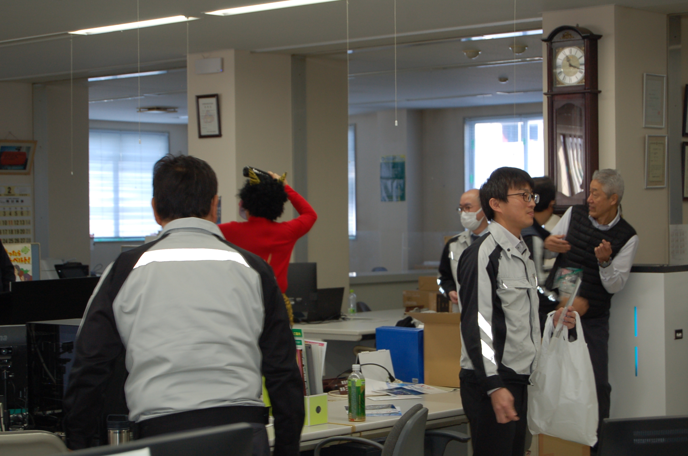 鬼に豆を投げ、無病息災と会社の発展を祈願いたしました。