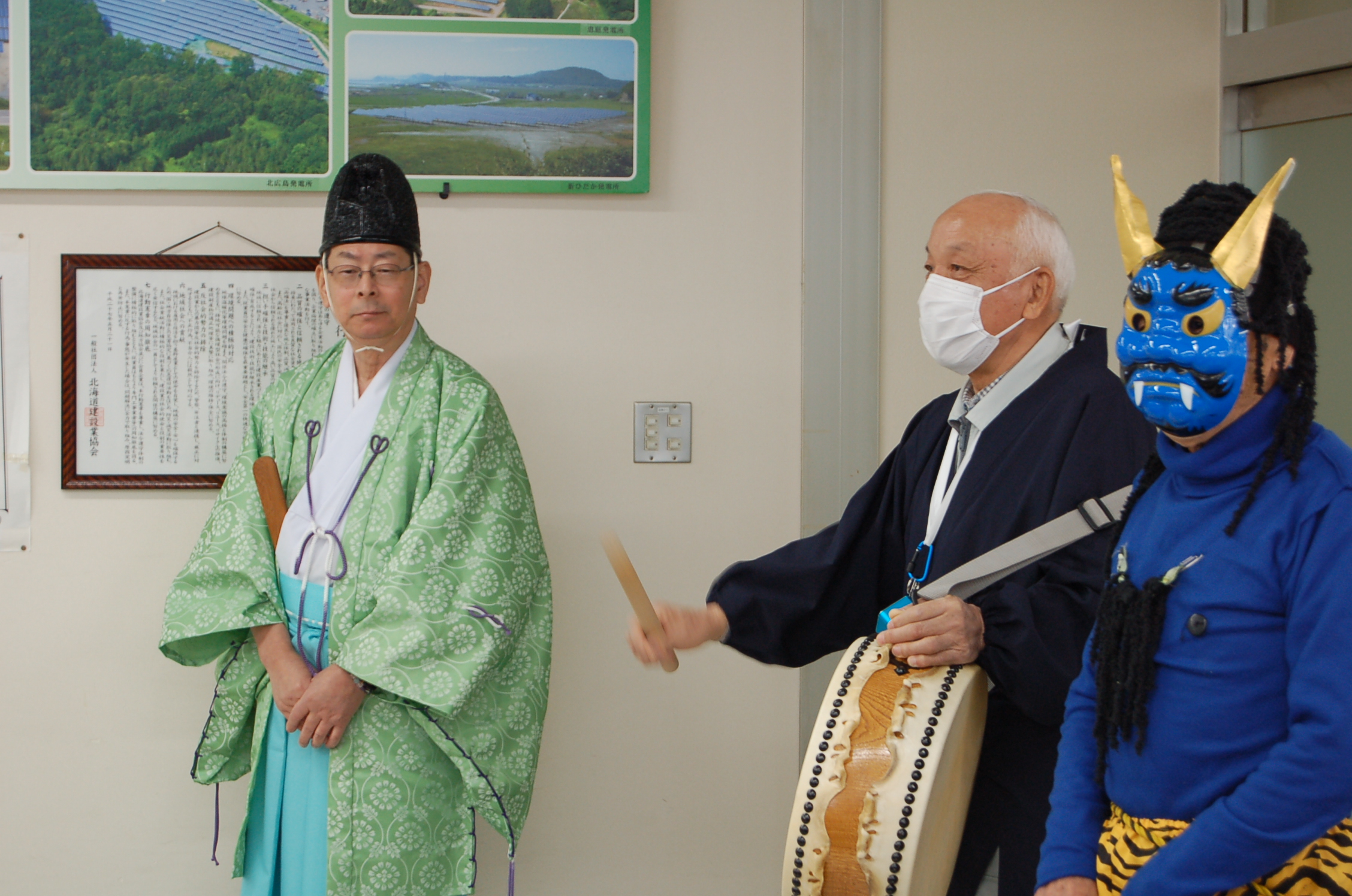 今年も豊栄神社による御祓いと節分の豆まきを行いました。